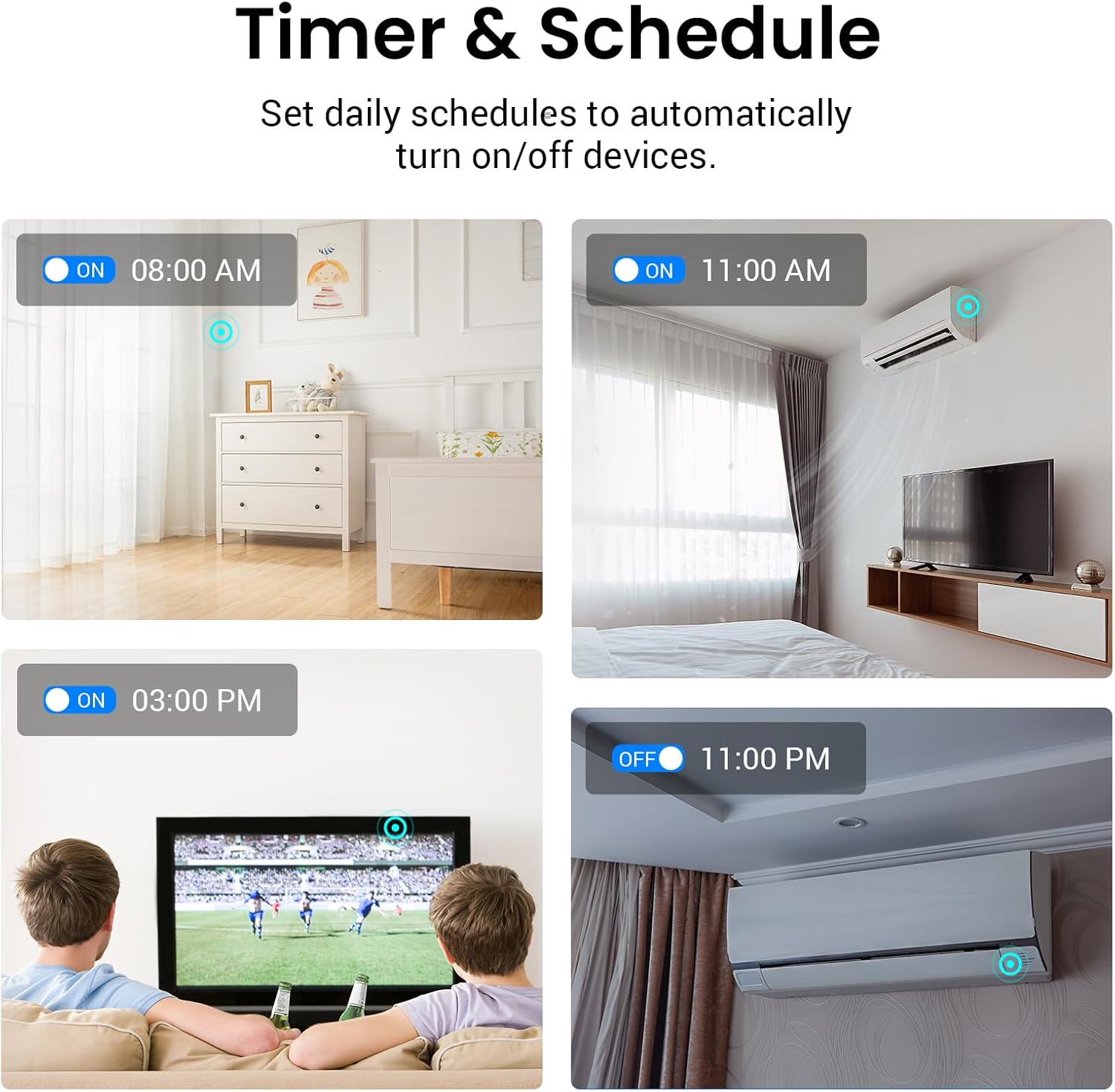 Personalizeaza scene prin apasare unica si programe de automatizare care sunt stocate local pe dispozitivul RM MAX. Chiar si fara acces la internet, rutinele tale precum „Buna dimineata” (pentru a deschide rulourile si a reda muzica) sau „Ora de culcare” (pentru a opri dispozitivele) pot rula in continuare fara probleme. RM MAX asigura un control offline fiabil pentru un stil de viata mai inteligent si mai eficient din punct de vedere energetic.