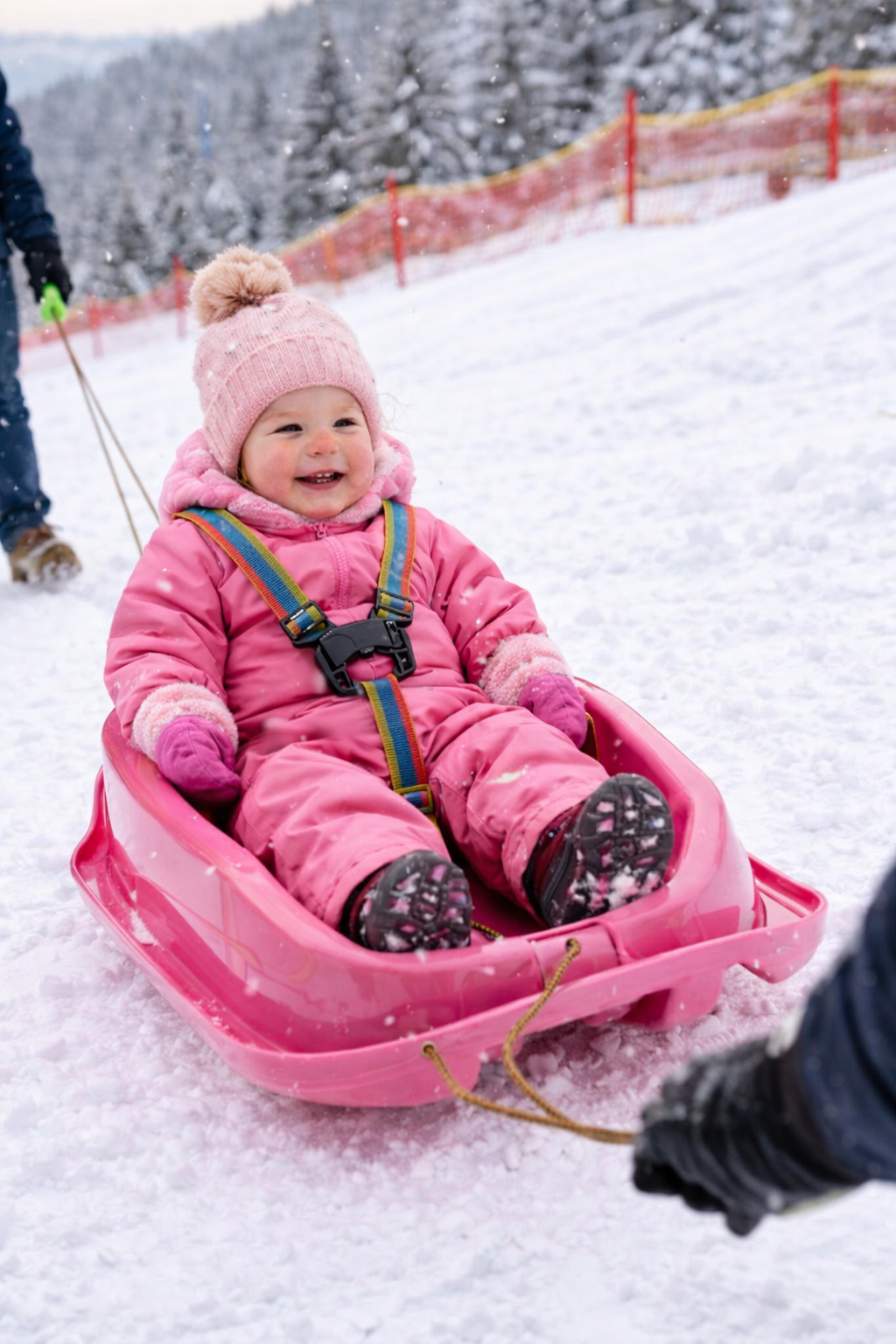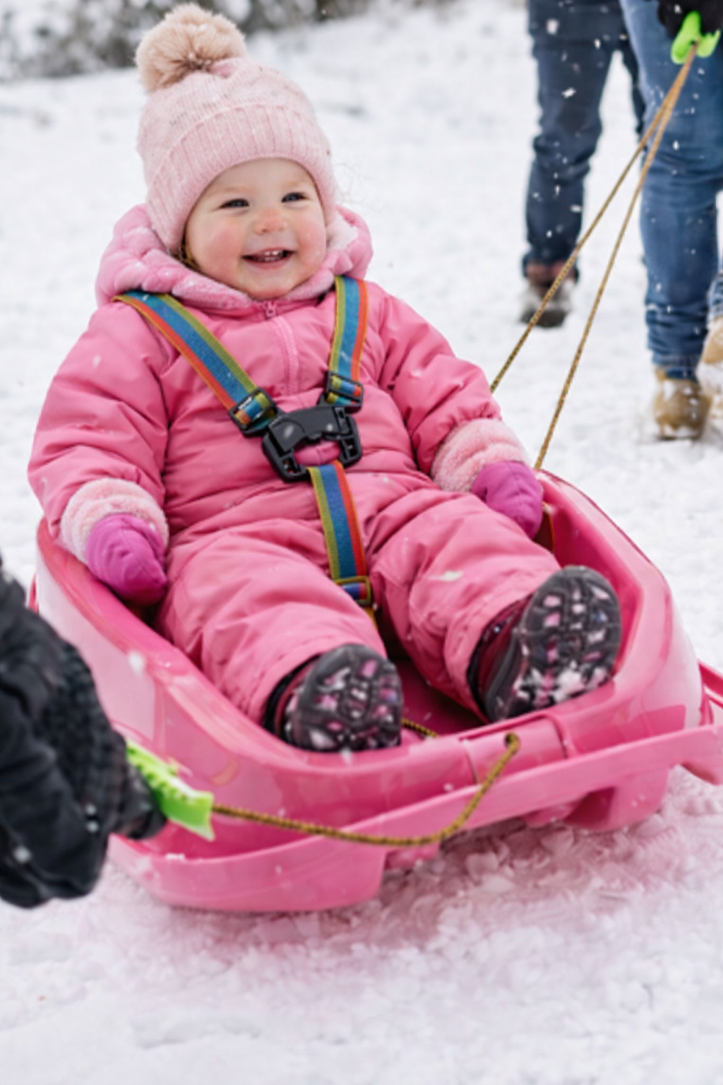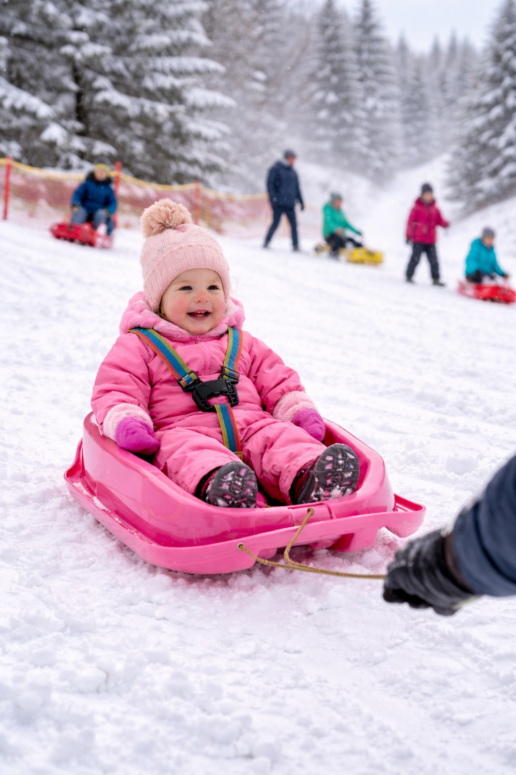 Primele plimbări pe zăpadă merită să fie comode, stabile și sigure. Marmat Mini este o sanie gândită special pentru cei mici (12 luni+), cu spătar înalt și centură de siguranță în 3 puncte, astfel încât copilul să stea bine poziționat, iar tu să o tragi ușor cu frânghia cu mâner inclusă.