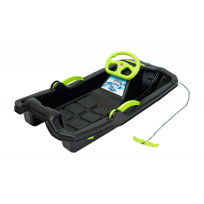 Transformă fiecare coborâre într-o aventură memorabilă! Această sanie pentru copii cu volan sportiv este concepută pentru distracție intensă, dar și pentru control și siguranță sporită, oferindu-le celor mici senzația autentică de „pilot” pe zăpadă.